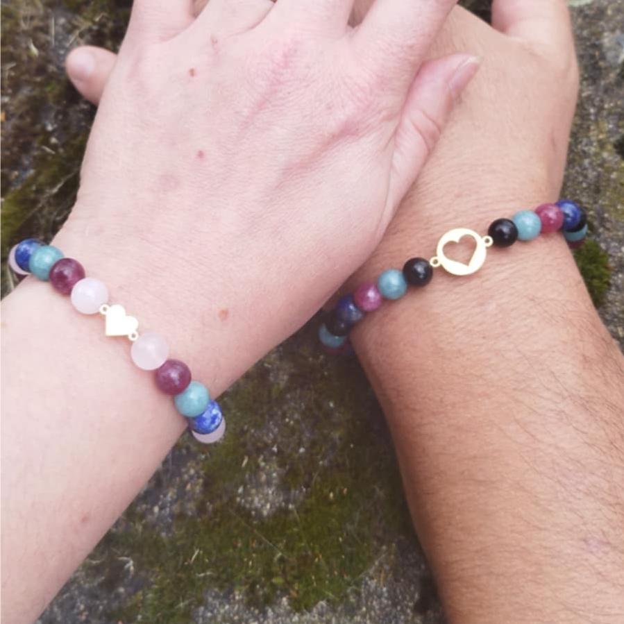 Renforcez votre lien amoureux grâce à ce duo de bracelets en pierres naturelles et d'un pendentif en acier inoxydable, spécialement conçu pour les couples. Chaque bracelet associe des pierres de lithothérapie sélectionnées pour favoriser l’amour, la confiance, et la communication.