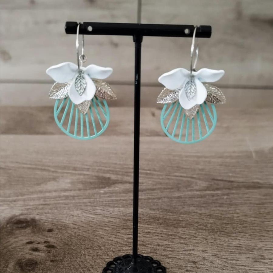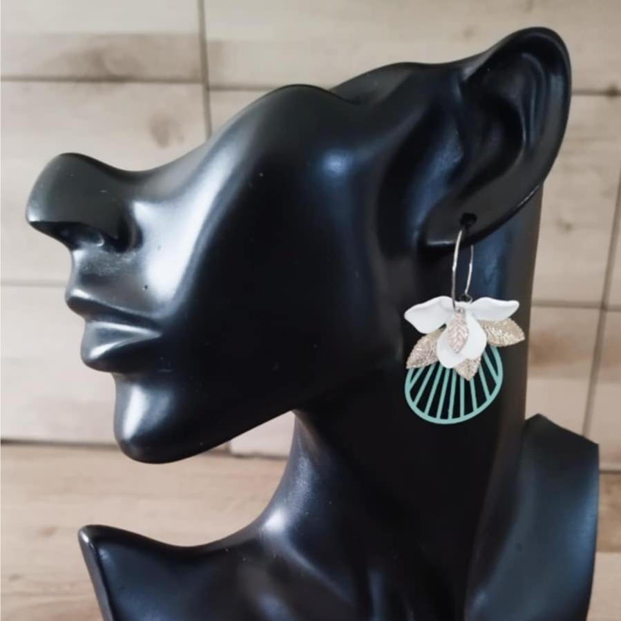 L'ensemble de la paire est en acier inoxydable, et les breloques peintes sont en émail. La créole est de diamètre 2 cms.