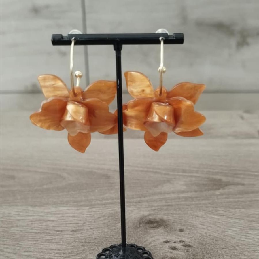 La créole de 2.5 cms est en acier inoxydables, les fleurs sont en acrylique.