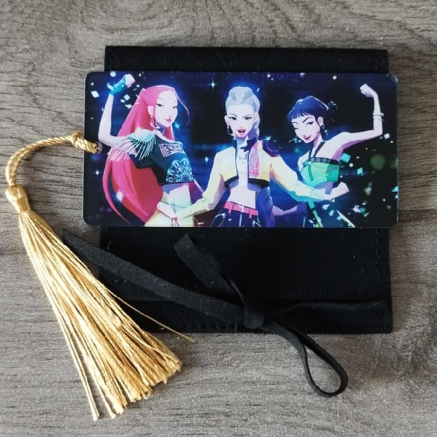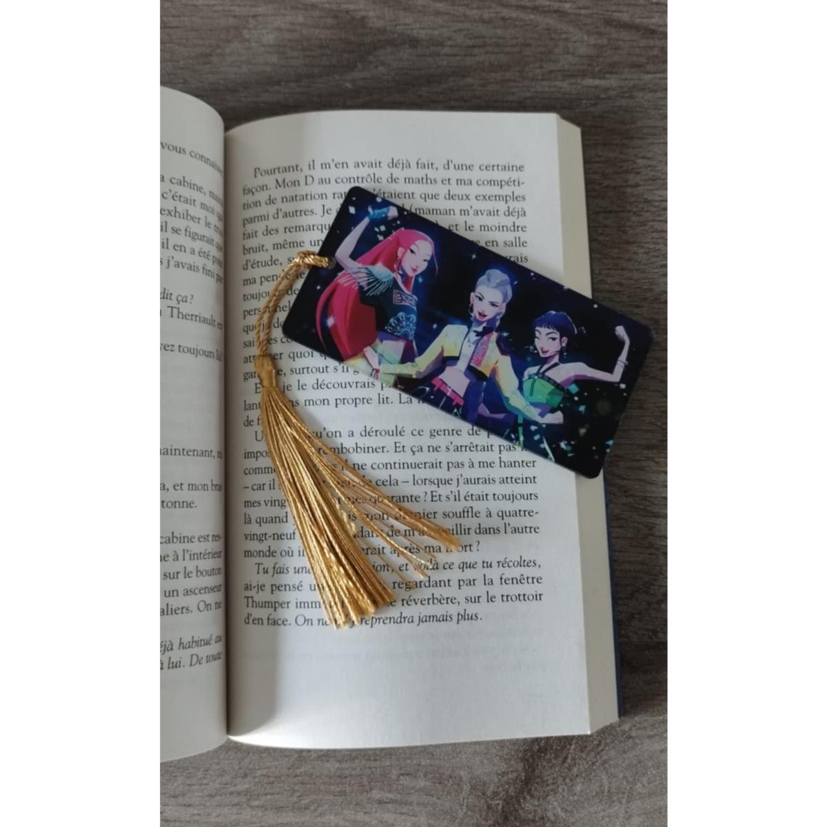 Marque page k-pop Demon Hunters, réhaussé d'un pompon jaune.