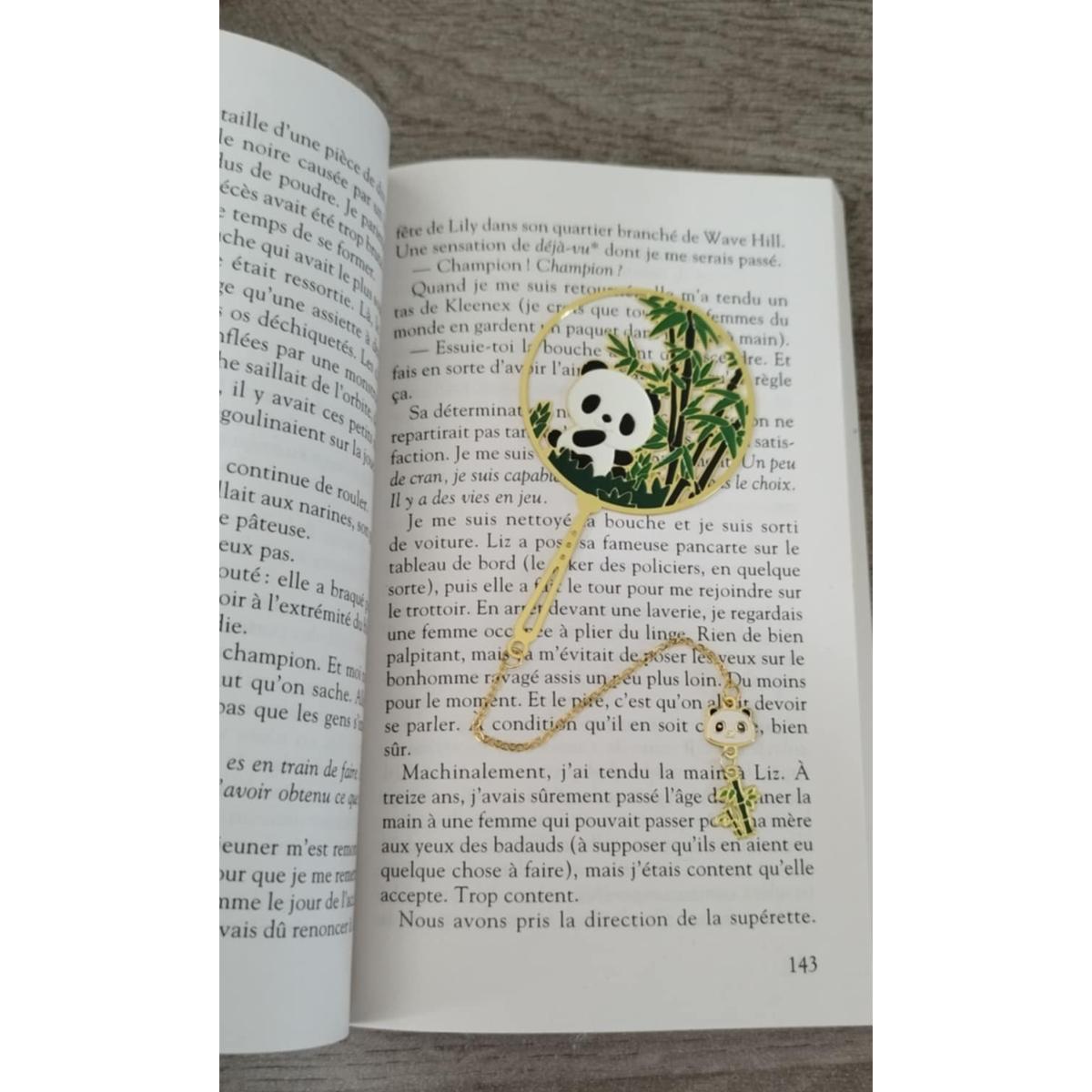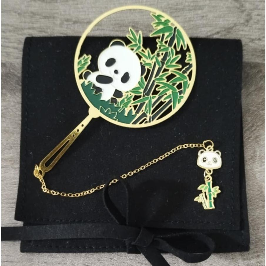 Marque page panda et son petit bout de bambou en métal émaillé.