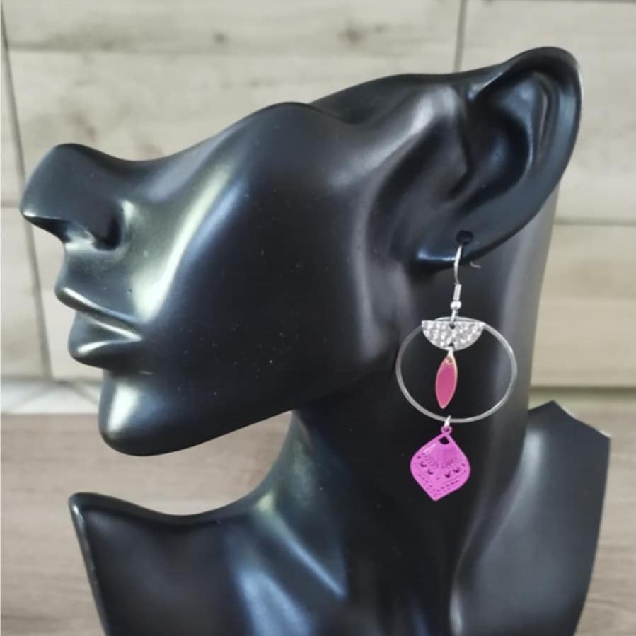 Boucles d’oreilles dépareillées pendantes argentées, fabrication française garantie sans nickel ni plomb.