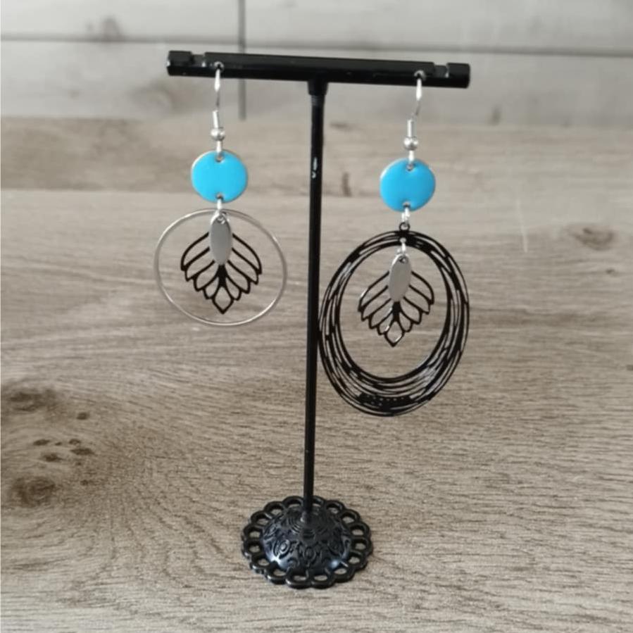 L’ensemble de la paire de boucle d'oreilles est en acier inoxydable et laiton, les breloques de couleurs sont en émail.