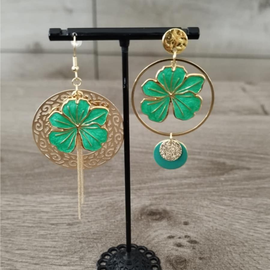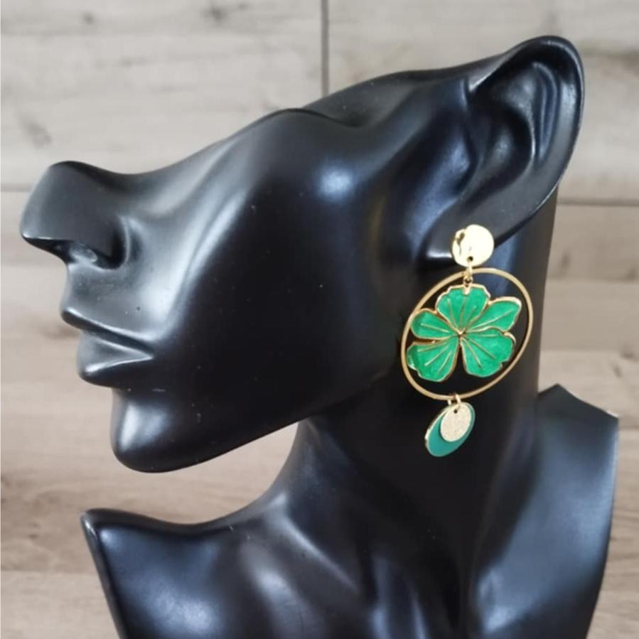 L’ensemble de la paire de boucle d'oreilles est en acier inoxydable et les sequins en émail peinte.