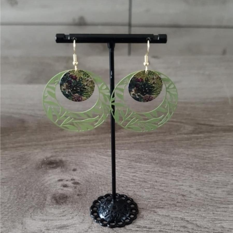 L’ensemble de la paire de boucle d'oreilles est en acier inoxydable et les sequins en émail peinte.